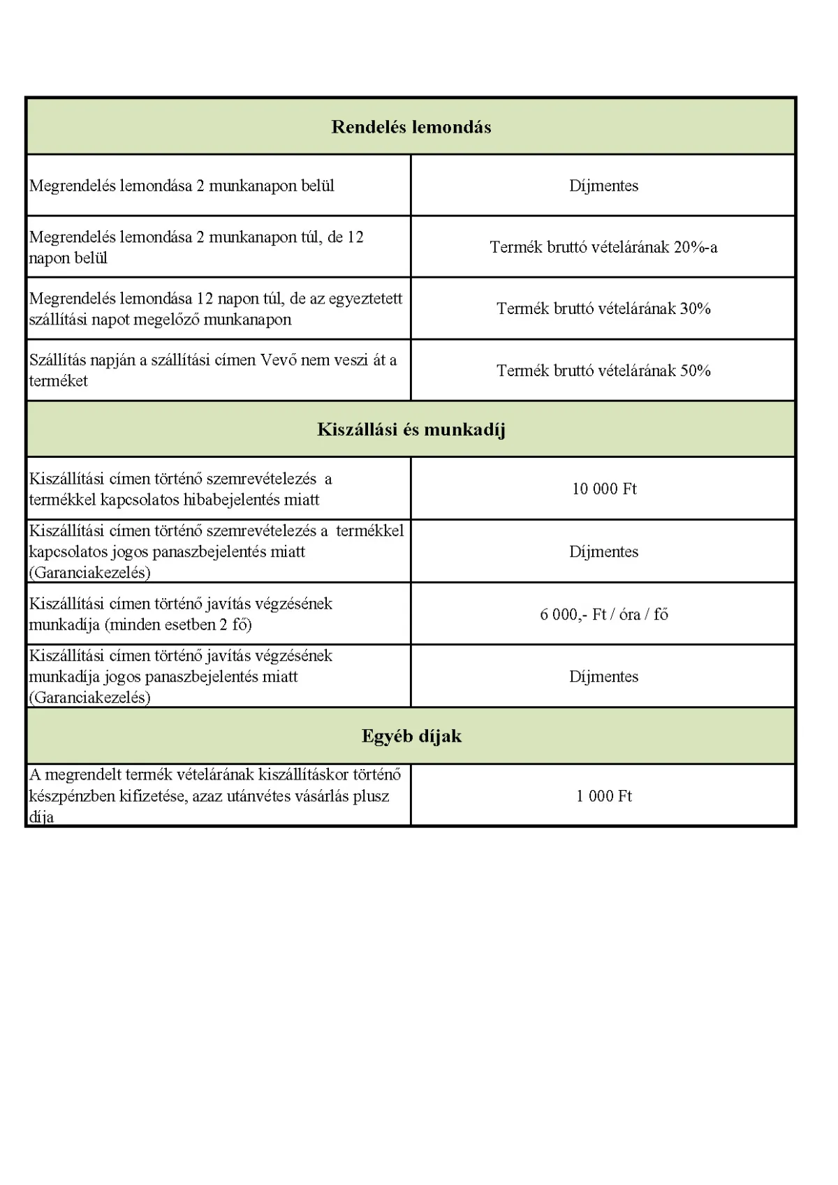 Díjtáblázat