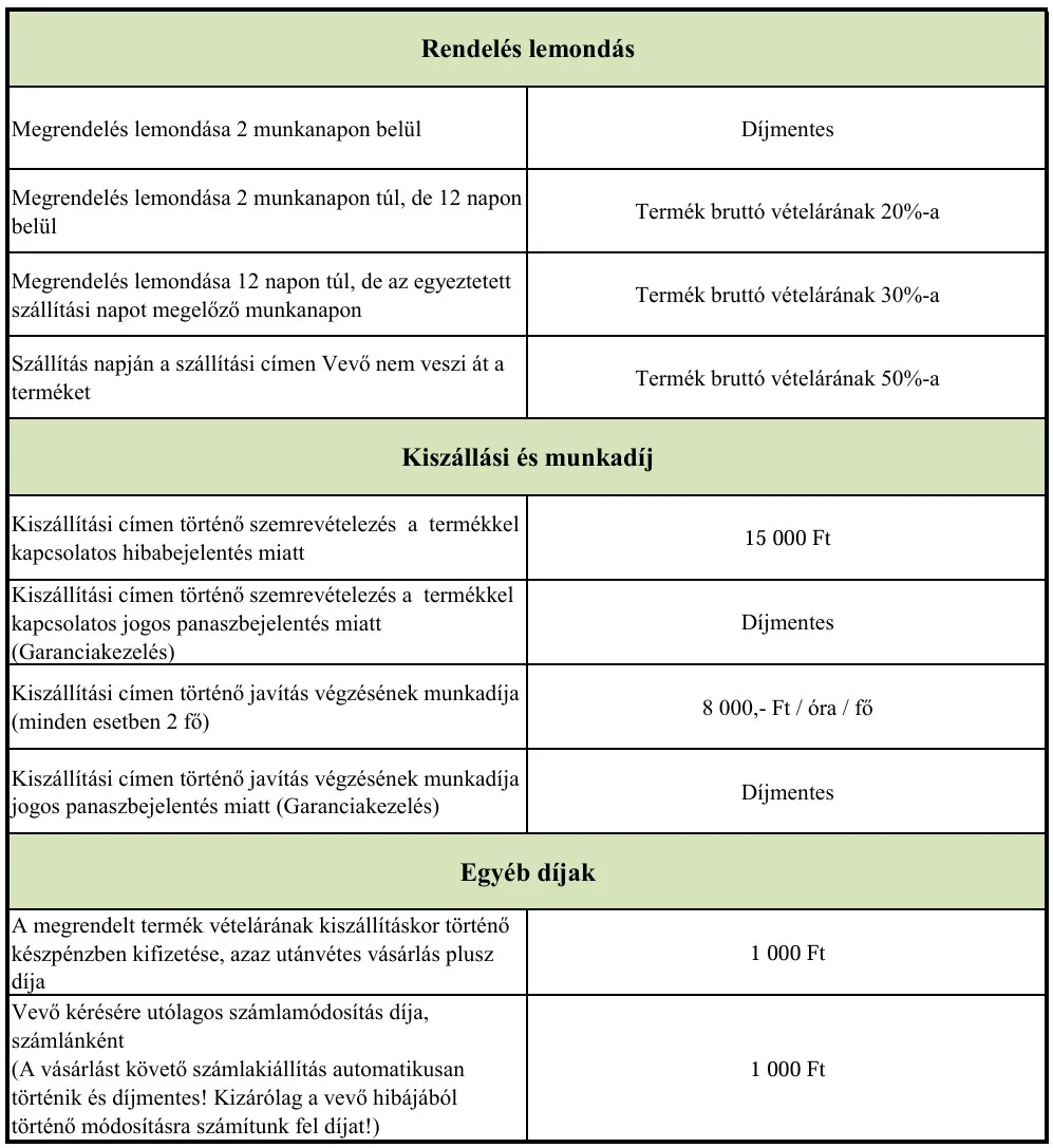 Díjtáblázat
